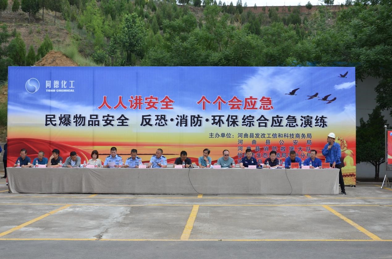 為了貫徹落實2023年全省安全生產(chǎn)月“人人講安全、個個會應急”主題活動,有效預防、妥善處理民爆物品恐怖暴力襲擊事件,切實加強突發(fā)消防、環(huán)保事件現(xiàn)場應急處置的能力,有效提高應急預案的科學性、實用性和可操作性,6月28日上午,我公司聯(lián)合河曲縣發(fā)工科商局、公安局、消防救援大隊、市生態(tài)環(huán)境局河曲分局、城建交通局主辦了2023年民爆物品安全、反恐、消防、環(huán)保綜合應急演練,市工業(yè)和信息化局馬科長應邀出席演練活動。